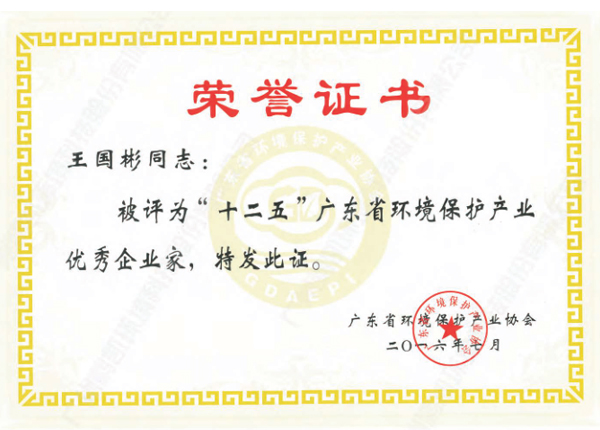 “十二五”廣東省環境保護產業優秀企業家