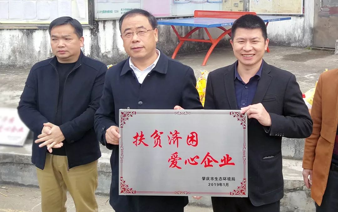 廣州鵬凱環(huán)境科技股份有限公司董事長(zhǎng)王國(guó)彬、副總經(jīng)理劉秀平一同參加了慰問(wèn),肇慶市生態(tài)環(huán)境局局長(zhǎng)程海濱向鵬凱環(huán)境贈(zèng)與了“扶貧濟(jì)困 愛(ài)心企業(yè)”牌匾。