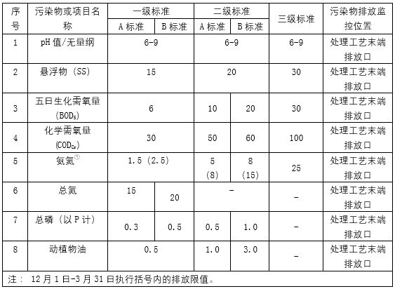 出水排入其它水體的處理設施執行二級標準。其中,規模大于50m3/d(含)的處理設施執行A標準,規模在50m3/d(不含)-5m3/d(含)的處理設施執行B標準。