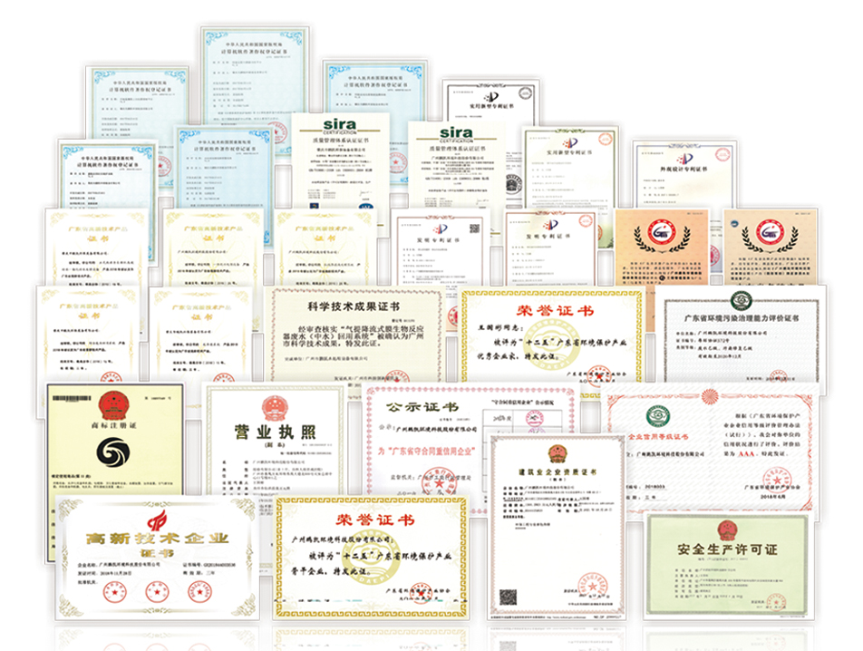 目前鵬凱環境已獲得包括“立式低能耗內循環一體化污水處理設備”、“高壓旋流膜生物感應器【VEUPIC(鵬凱塔反應器)】”、“一體化水處理設備”、“滲濾液處理系統”、“反滲透垃圾系統”、“一種含油含洗滌廢水回用系統” 、“綜合廢水回用系統”等多項高新技術產品認證及國家發明專利。