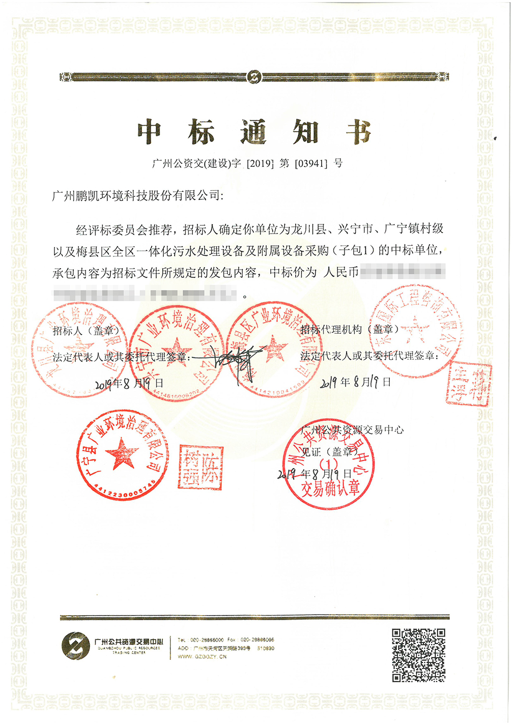 中標(biāo)喜報(bào):2019年08月19日,鵬凱環(huán)境憑借雄厚的技術(shù)力量、豐富的工程施工經(jīng)驗(yàn)和良好的企業(yè)信譽(yù)贏得了招標(biāo)單位的肯定,成功中標(biāo)龍川縣、興寧市、廣寧鎮(zhèn)村級(jí)以及梅縣區(qū)全區(qū)一體化污水處理設(shè)備及附屬設(shè)備采購(子包1)項(xiàng)目。這是鵬凱環(huán)境在村鎮(zhèn)污水處理市場深耕和拓展方面取得的又一碩果,為進(jìn)一步成為中國村鎮(zhèn)水環(huán)境治理領(lǐng)域領(lǐng)軍企業(yè)提供了重要支撐。