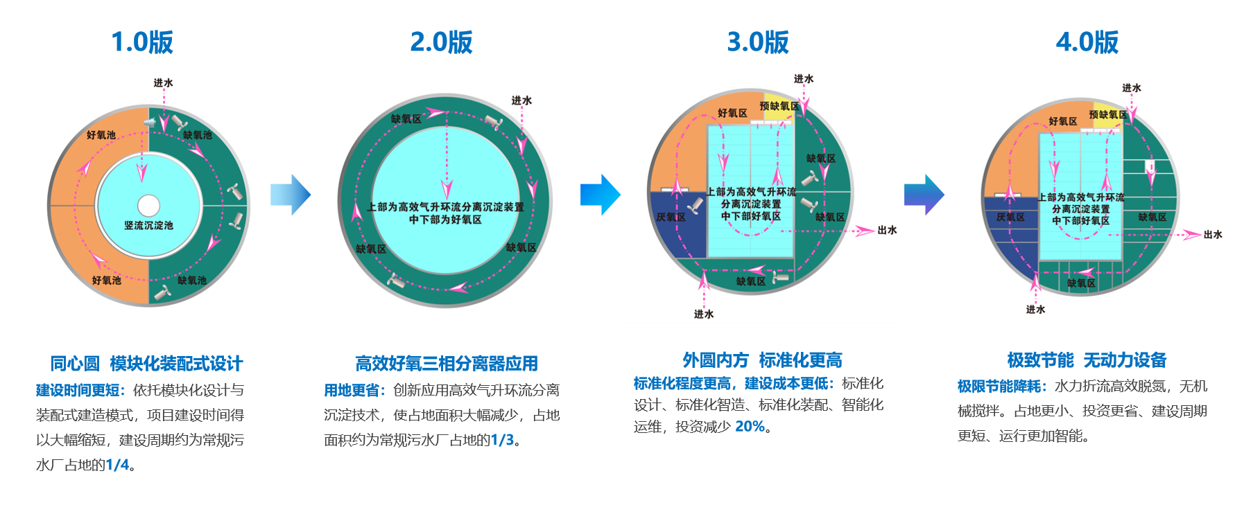 鵬凱環(huán)境裝配式污水廠DIAB工藝核心技術(shù)已完成從1.0到4.0版本的跨越式升級(jí),實(shí)現(xiàn)無(wú)動(dòng)力設(shè)備,極致節(jié)能降耗:水力折流高效脫氮,無(wú)機(jī)械攪拌;水質(zhì)更穩(wěn)定,超強(qiáng)的總氮去除效率。占地更小、投資更省、建設(shè)周期更短、運(yùn)行更加智能。為污水處理行業(yè)樹(shù)立了低碳高效的新標(biāo)桿,以科技創(chuàng)新賦能污水處理技術(shù)低碳高效發(fā)展。