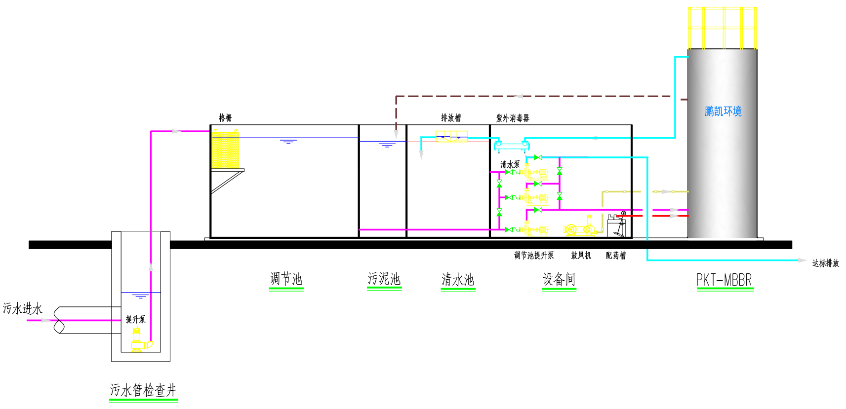 肇慶新區(qū)生態(tài)科技產(chǎn)業(yè)園區(qū)臨時污水處理工程是為滿足園區(qū)附近多個項目開工建設及投產(chǎn)需要而建設的一體化污水處理設施,對項目排出的污水統(tǒng)一進行處理后再排出到河涌。本工程采用了鵬凱環(huán)境自主研發(fā)倒置A2O+MBBR處理工藝,一體化污水處理工程項目總設計處理規(guī)模為500m3/d,可滿足約3000人日常生活污水的排放量。