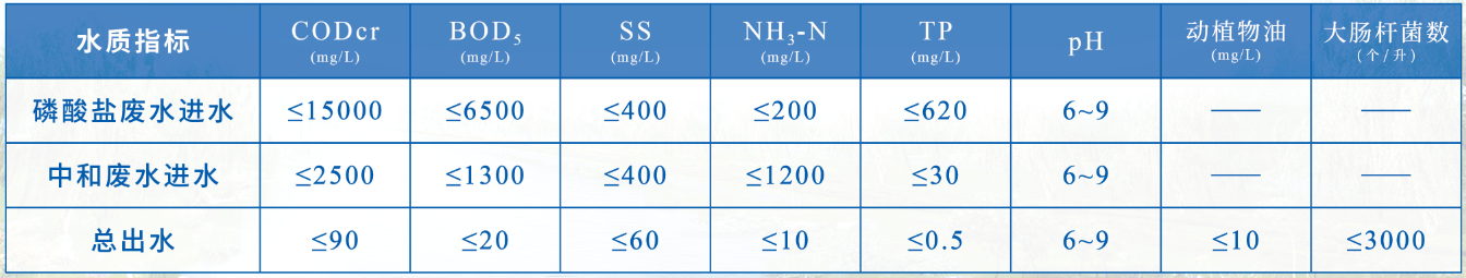 【進水水質指標及出水水質標準】