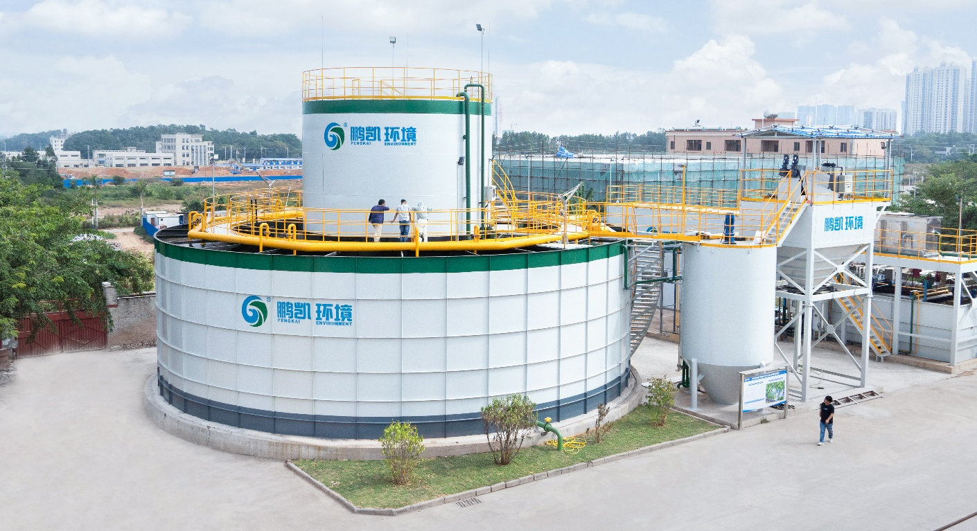 建設規模1000m3/d中和廢水處理系統采用具有成熟經驗的“集水池+隔油池+氣浮池+調節池+一體化水解酸化+鵬凱圓(循環升流式同步短程硝化 一 反硝化水處理集成系統,內含厭氧段+缺氧段+好氧段+澄清段)+物化沉淀+消毒裝置”的工藝流程,保證出水穩定達標排放。項目出水執行廣東省地方標準《水污染物排放限值》(DB44/26-2001)中的第二時段一級標準。