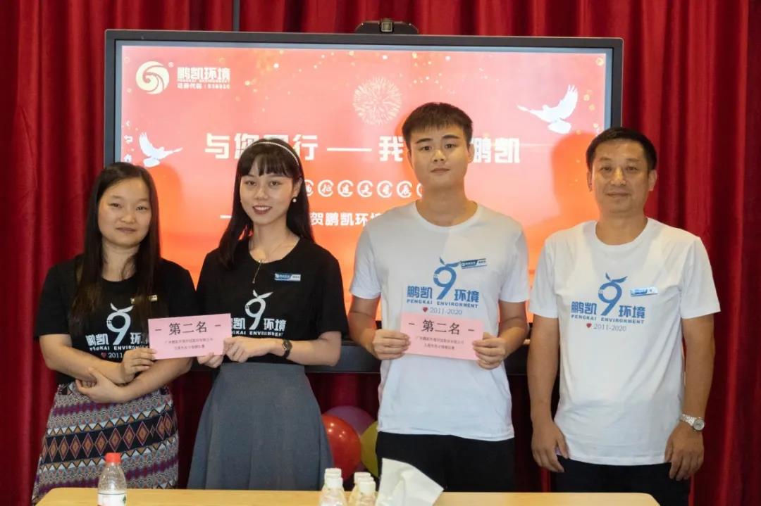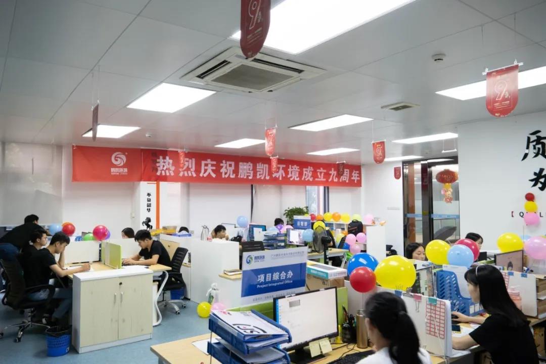 2020年9月9日,以“與您同行——我們的鵬凱”為主題的鵬凱環境九周年慶活動圓滿舉行!廣州鵬凱環境科技股份有限公司總部、肇慶市鵬凱環保裝備有限公司,以及湖南、貴州、海南等多家分公司的領導、員工齊聚一堂,共同見證這一歷史性的一刻,為鵬凱環境成立九周年歡呼慶祝!