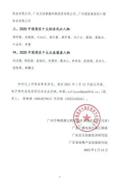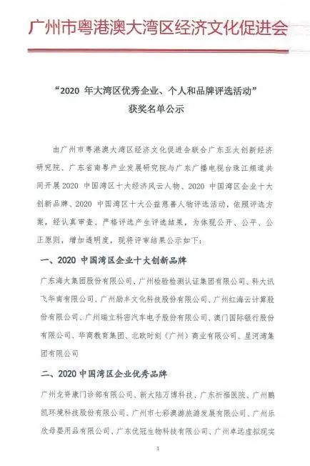 近日,由廣州市粵港澳大灣區經濟文化促進會聯合廣東亞太創新經濟研究院、廣東省南粵產業發展研究院與廣東廣播電視臺珠江頻道共同開展的“2020中國灣區十大經濟風云人物”、“2020中國灣區企業十大創新品牌”、“2020中國灣區十大公益慈善人物”、“2020中國灣區企業優秀品牌”評選活動正式揭曉獲獎名單。