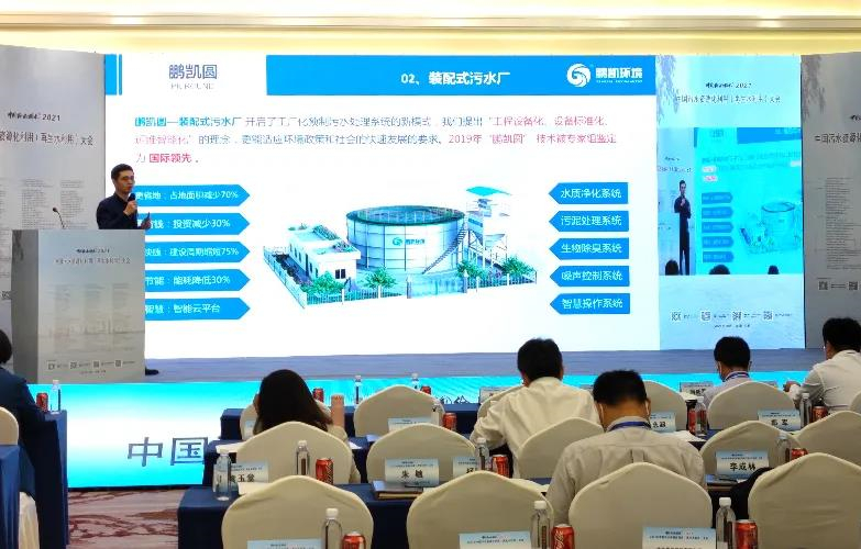 鵬凱環境朱梟強博士在“2021中國污水資源化利用(再生水利用)大會”及“2021年中國污水處理廠提標改造(污水處理提質增效)高級研討會”上向與會者分享了《創新型裝配式污水處理廠工藝及應用模式》、《城鎮污水處理及其資源化路徑的探索和實踐》。