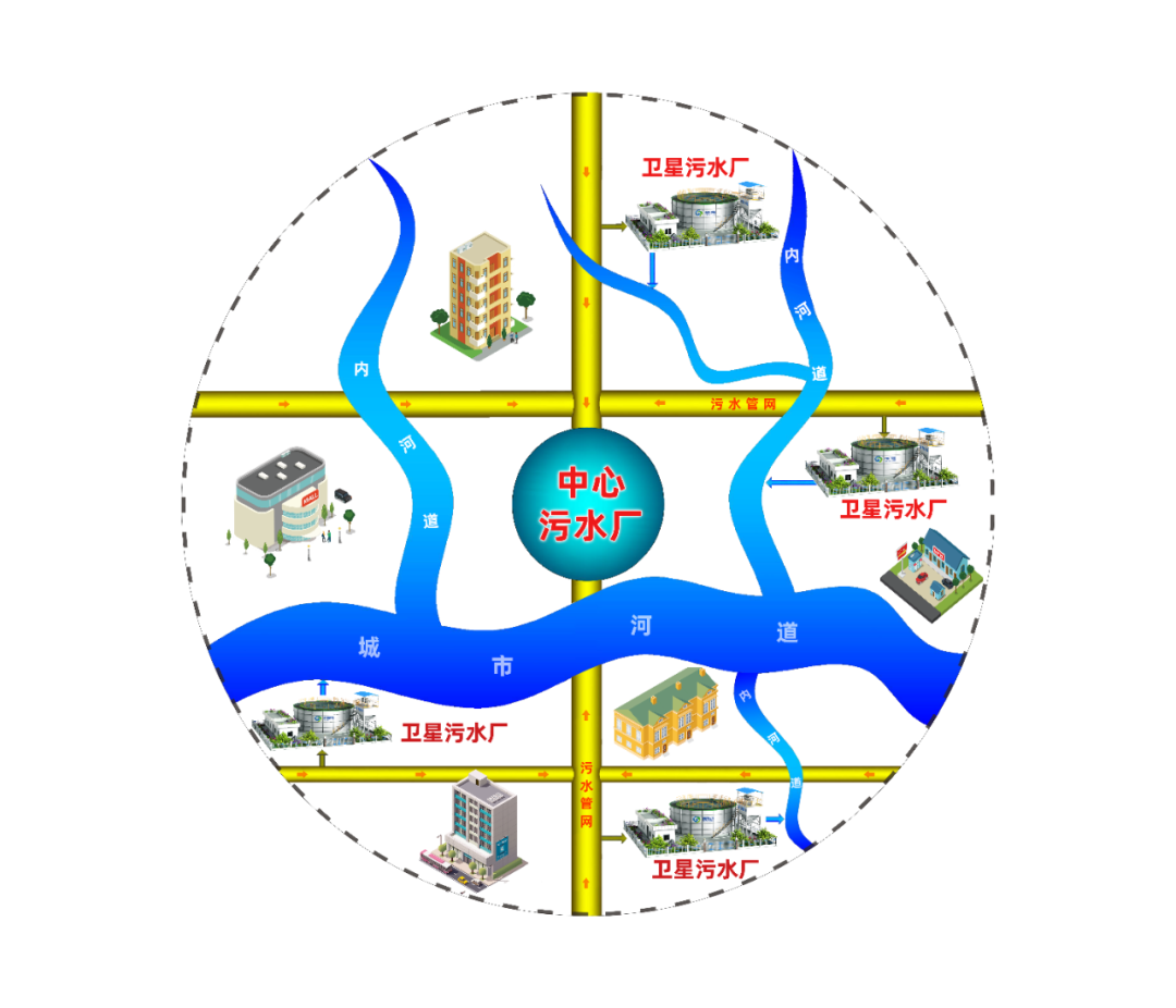 衛(wèi)星式污水處理系統(tǒng)示意圖
