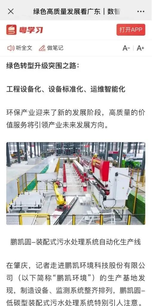 3月13日,南方網(wǎng)、粵學(xué)習(xí)以“綠色高質(zhì)量發(fā)展看廣東|數(shù)智化轉(zhuǎn)型的綠色范本”為題,深入報(bào)道鵬凱環(huán)境堅(jiān)持將改革創(chuàng)新和綠色發(fā)展相互融合,推動(dòng)企業(yè)邁向綠色高質(zhì)量發(fā)展“快車(chē)道”的生動(dòng)實(shí)踐。下面讓我們一同見(jiàn)證鵬凱環(huán)境技術(shù)創(chuàng)新以及業(yè)態(tài)創(chuàng)新,探尋鵬凱環(huán)境實(shí)現(xiàn)高質(zhì)量發(fā)展的綠色轉(zhuǎn)型升級(jí)突圍之路。