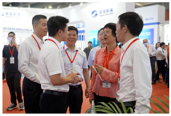 開幕式結束后,出席博覽會開幕式的領導貴賓、廣東省環境保護產業協會榮譽會長區岳州先后蒞臨鵬凱環境展位參觀指導。通過現場充分溝通與交流,參觀領導一行深入了解鵬凱環境前沿技術產品及創新解決方案,對我司聚焦裝配式污水處理系統細分市場,堅定不移走技術產品化之路給予了認可,并勉勵我司瞄準關鍵核心技術問題,加大科技攻關力度,持續提升科技創新力、成果轉化力、核心競爭力,為生態環境保護工作貢獻更大的力量。