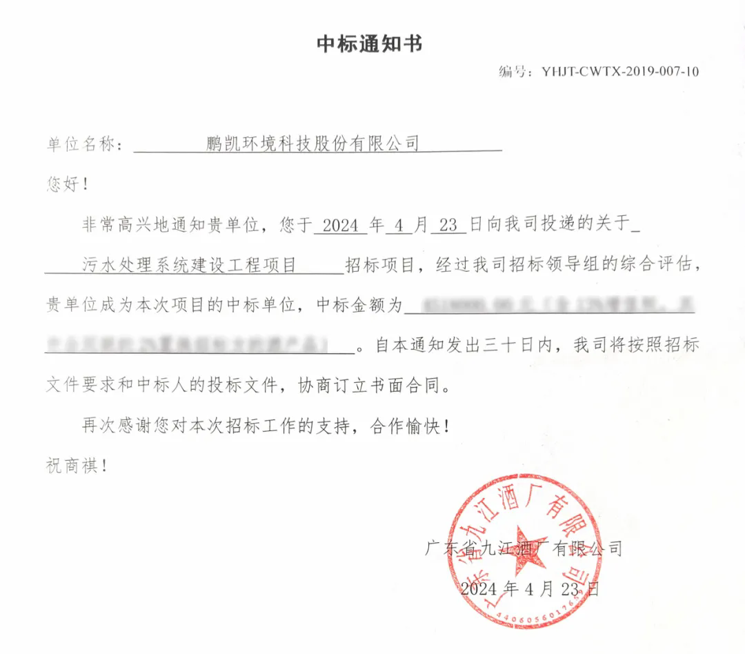 精益求精展實力,勠力同心鑄佳績。鵬凱環境憑借卓越的技術實力與豐富的實踐經驗,成功中標廣東省九江酒廠有限公司污水處理系統建設工程項目。此次中標不僅意味著鵬凱環境成功涉足豉香型酒類廢水處理領域,拓寬了不同香型酒類廢水處理的服務范疇,更標志著我司在多元化酒類廢水處理技術層面上實現了重要的能力提升與實質性的戰略拓展。