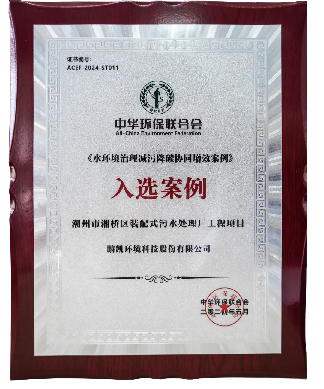 鵬凱環(huán)境“潮州市湘橋區(qū)裝配式污水處理廠工程項目”成功入選《水環(huán)境治理減污降碳協(xié)同增效案例》(以下簡稱《案例》)。這一榮譽不僅是對鵬凱環(huán)境治水技術(shù)實力的高度認(rèn)可,更彰顯了我司積極推動水環(huán)境治理領(lǐng)域減污降碳協(xié)同增效發(fā)展的堅定決心。