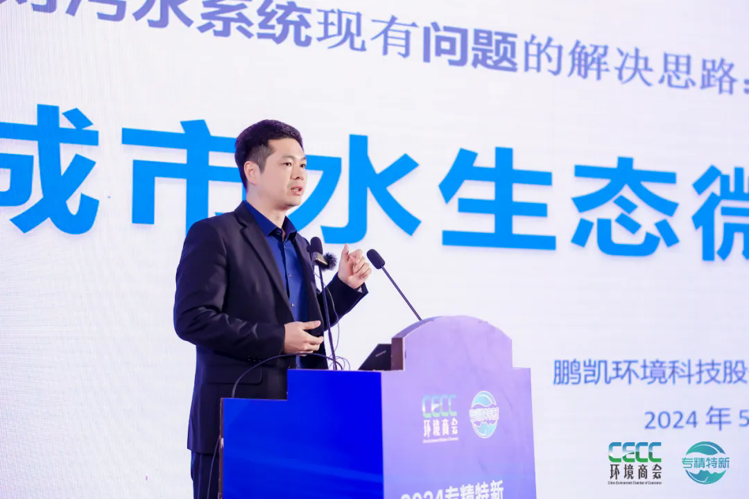 在此次盛會中,鵬凱環境集團研究院副院長朱梟強正高級工程師作《城市水生態微循環系統》專題演講,不僅向與會者分享了前沿綠色技術與新型治水模式,還深刻闡明了環保科技與生態文明建設相融合的核心理念。