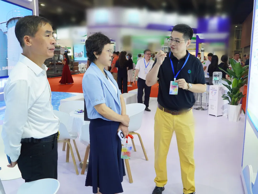 展會(huì)現(xiàn)場(chǎng),廣東省生態(tài)環(huán)境廳二級(jí)巡視員許金洲,廣州市生態(tài)環(huán)境局番禺分局黨組書記、局長(zhǎng)朱素琴,廣州市生態(tài)環(huán)境局番禺分局四級(jí)調(diào)研員楊曉波等領(lǐng)導(dǎo)先后親臨鵬凱環(huán)境展臺(tái)參觀指導(dǎo),鵬凱環(huán)境董事長(zhǎng)兼總裁王國(guó)彬,鵬凱環(huán)境集團(tuán)研究院副院長(zhǎng)、正高級(jí)工程師朱梟強(qiáng)熱情接待并就我司創(chuàng)新技術(shù)及發(fā)展成果作詳細(xì)匯報(bào)。巡館領(lǐng)導(dǎo)一行對(duì)我司在環(huán)境保護(hù)領(lǐng)域的積極探索與顯著成就給予高度肯定,鼓勵(lì)我司進(jìn)一步發(fā)揮科技創(chuàng)新優(yōu)勢(shì),加速發(fā)展新質(zhì)生產(chǎn)力,積極響應(yīng)國(guó)家綠色發(fā)展戰(zhàn)略,為推動(dòng)我國(guó)環(huán)保產(chǎn)業(yè)轉(zhuǎn)型升級(jí),助力美麗中國(guó)建設(shè)增添綠色動(dòng)力。