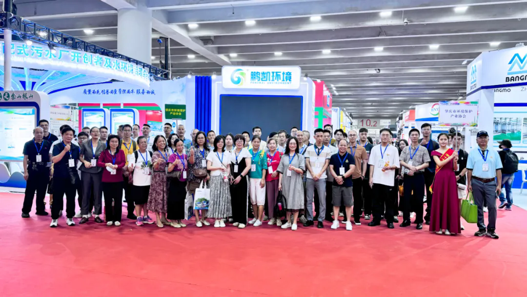 肇慶市環(huán)境保護(hù)產(chǎn)業(yè)協(xié)會(huì)觀展團(tuán)蒞臨鵬凱環(huán)境展臺(tái)參觀指導(dǎo)