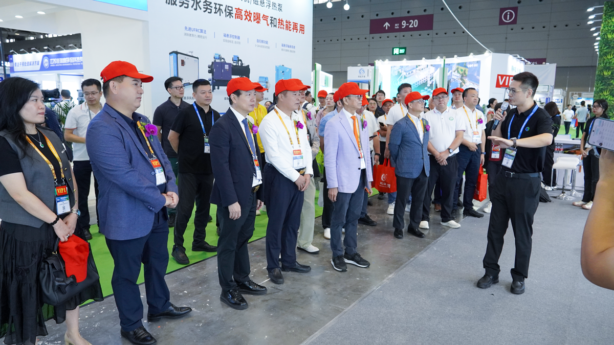 肇慶市環(huán)境保護(hù)產(chǎn)業(yè)協(xié)會(huì)觀展團(tuán)蒞臨鵬凱環(huán)境展臺(tái)參觀指導(dǎo)