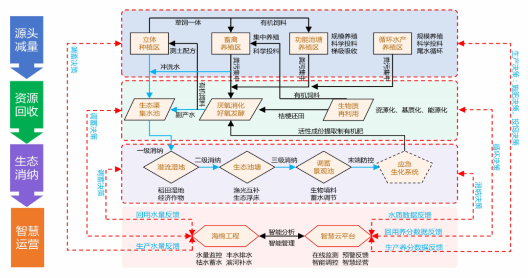 鵬凱環境遵循源頭減量、資源回收、生態消納與智慧運營的核心理念,致力于打造“種養結合、綠色高效、資源循環”現代綠色生態循環農業模式,通過整合水產養殖、畜禽養殖、能源生產、農作物種植及污水處理等多元業態,實現了區域內資源的高效循環利用。